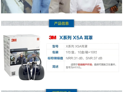 3M X5A头带式耳罩听力防护,可选多种头带方式,包括头顶式,颈后式和挂安全帽式,满足大部分使用者需求;优良声学性能设计的高降噪罩杯,提供宽大的内部空间和良好的声学质量以及舒适性;头带与罩杯连接处的特殊设计使佩戴者更灵活的调节罩杯高度;NRR:31 dB,SNR:37 dB;耳罩垫圈中有液态啫喱垫圈,可提高耳罩与头部的密封性和舒适性,防护效果更好,佩戴更舒适。可选多种头带方式,包括头顶式,颈后式和挂安全帽式,满足大部分使用者需求;优良声学性能设计的高降噪罩杯,提供宽大的内部空间和良好的声学质量以及舒适性;头带与罩杯连接处的特殊设计使佩戴者更灵活的调节罩杯高度;NRR:31 dB,SNR:37 dB;耳罩垫圈中有液态啫喱垫圈,可提高耳罩与头部的密封性和舒适性,防护效果更好,佩戴更舒适。可选多种头带方式,包括头顶式,颈后式和挂安全帽式,满足大部分使用者需求;优良声学性能设计的高降噪罩杯,提供宽大的内部空间和良好的声学质量以及舒适性;头带与罩杯连接处的特殊设计使佩戴者更灵活的调节罩杯高度;NRR:31 dB,SNR:37 dB;耳罩垫圈中有液态啫喱垫圈,可提高耳罩与头部的密封性和舒适性,防护效果更好,佩戴更舒适。可选多种头带方式,包括头顶式,颈后式和挂安全帽式,满足大部分使用者需求;优良声学性能设计的高降噪罩杯,提供宽大的内部空间和良好的声学质量以及舒适性;头带与罩杯连接处的特殊设计使佩戴者更灵活的调节罩杯高度;NRR:31 dB,SNR:37 dB;耳罩垫圈中有液态啫喱垫圈,可提高耳罩与头部的密封性和舒适性,防护效果更好,佩戴更舒适。3M X5A头带式耳罩听力防护